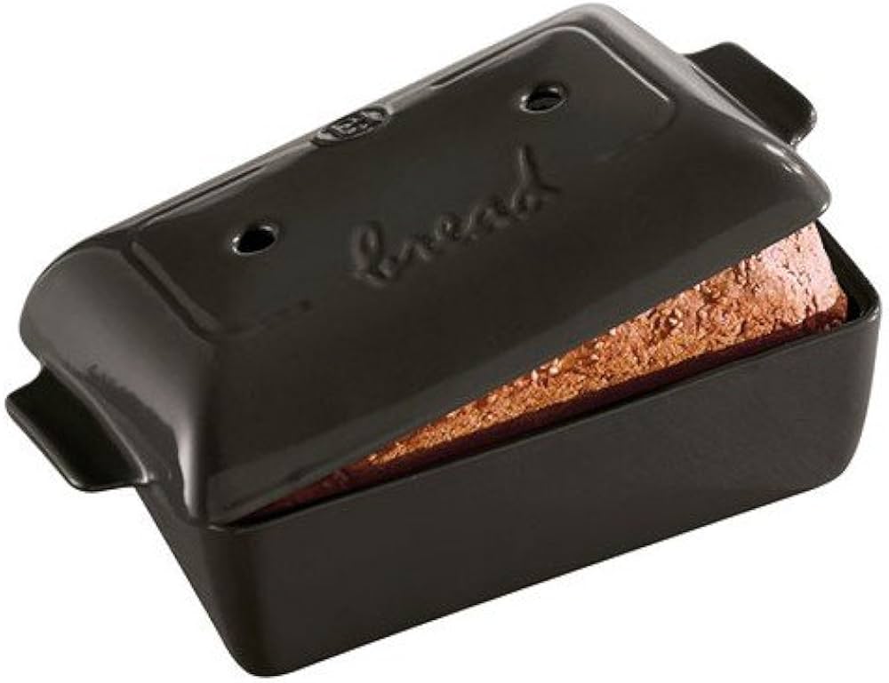 This bread loaf baker allows you to bake all kinds of home-made bread (for sandwiches, gluten-free, rye bread…), with a crispy crust and soft inside. The refractory ceramic and domed lid create the right level of humidity during cooking to get a perfect loaf. The holes in the base and lid help the dough to rise and create a dry, crispy crust. The ridges on the bottom prevent the dough from sticking. The handles on the lid make it easy to manipulate. Loaf pan works well with approximately 1.5 lbs - 1.75 lbs or .68 - .80 kilos of dough max.